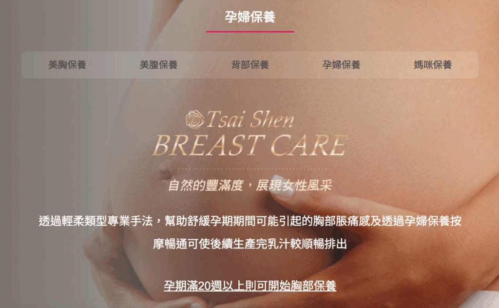 蔡慎國際美胸 – 孕婦保養方案(孕期滿 20 週以上即可開始保養)。(圖:蔡慎國際美胸官網)
